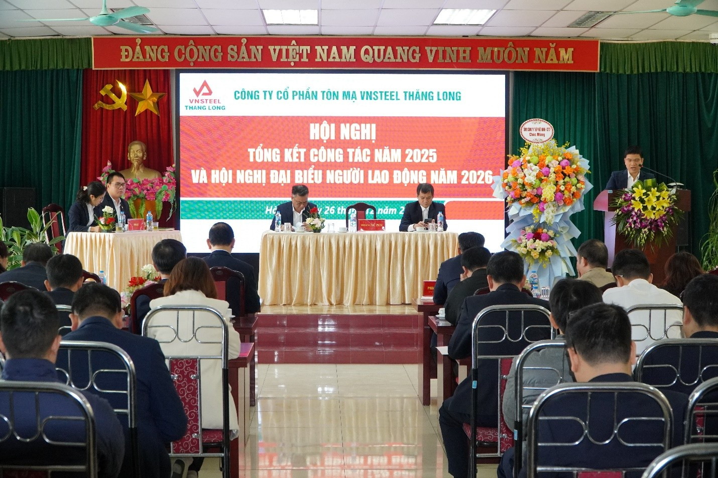 Sáng ngày 26 tháng 12 năm 2025, Công ty cổ phần Tôn mạ Vnsteel Thăng Long đã long trọng tổ chức Hội nghị Tổng kết công tác năm 2025 và Hội nghị đại biểu Người lao động Công ty năm 2026 tại trụ sở Lô 14 KCN Quang Minh, xã Quang Minh, Hà Nội.