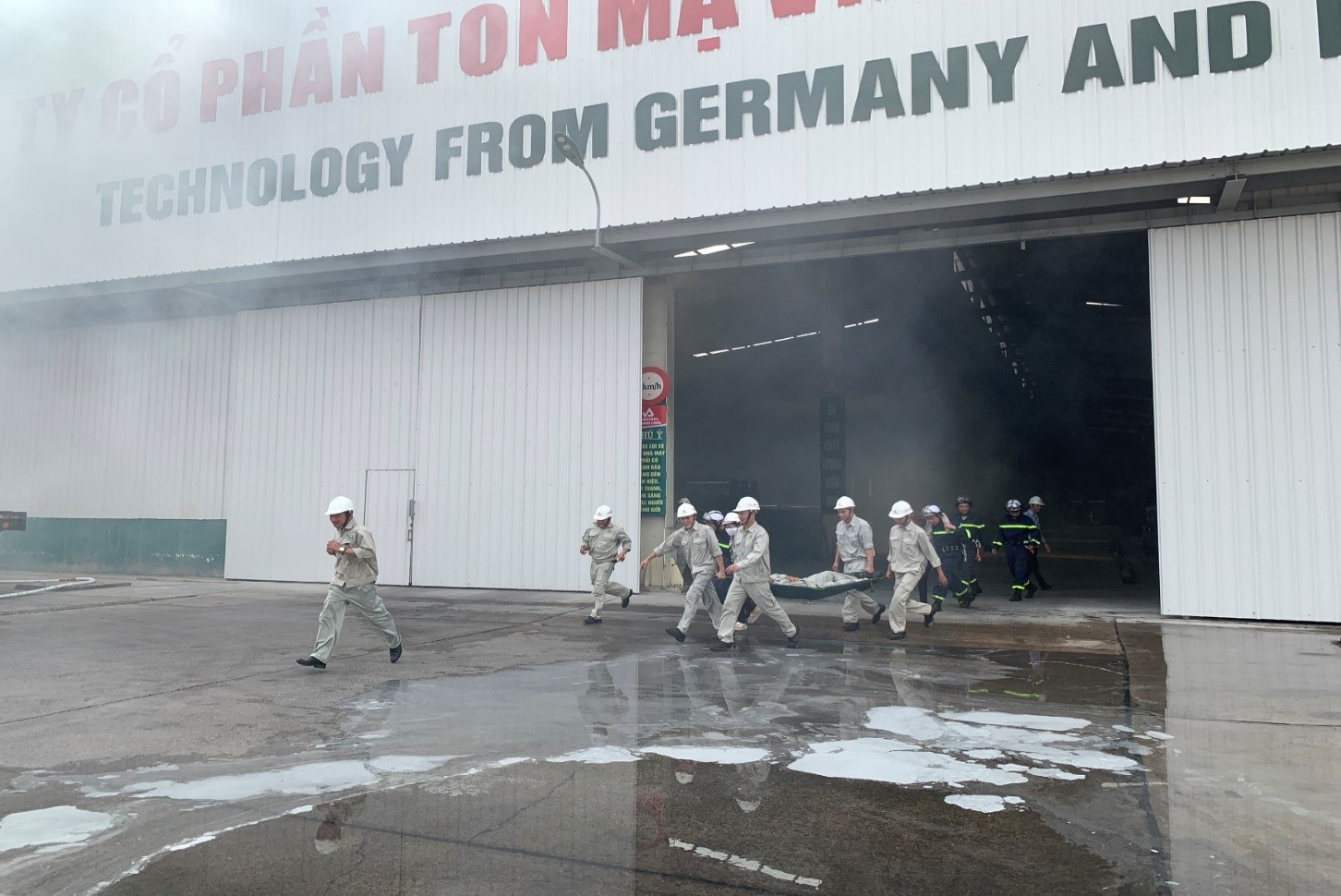 Để triển khai công tác nêu trên, ngày 28/11/2025 Vnsteel Thăng Long đã phối hợp cùng Phòng cảnh sát PCCC & CNCH - Công an TP Hà Nội tổ chức khóa huấn luyện về PCCC & CNCH và thực tập phương án chữa cháy CNCH cho CBCNV Công ty, trong đó lực lượng nòng cốt là Đội PCCC cơ sở Công ty.